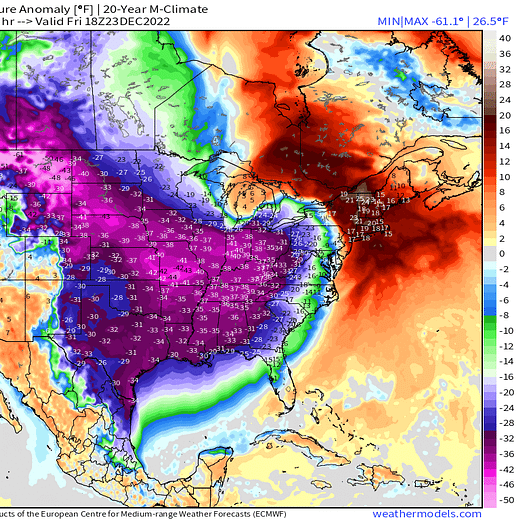 For instance, Accuweather is telling us that temperatures in Montana and North Dakota “could dip as low as 30 to 40 degrees Fahrenheit below zero”…